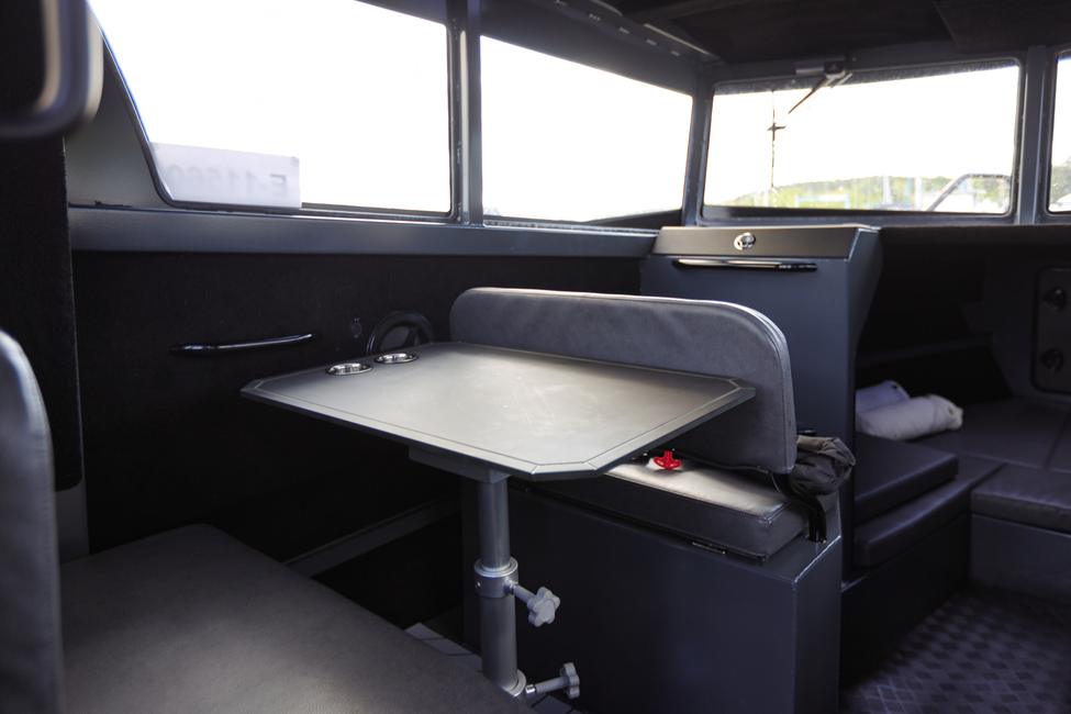 Takana avotilassa on myös fiksut klaffipenkit sekä iso säilytyslaatikko, joka soveltuu mainiosti kalastusvälineiden säilyttämiseen.