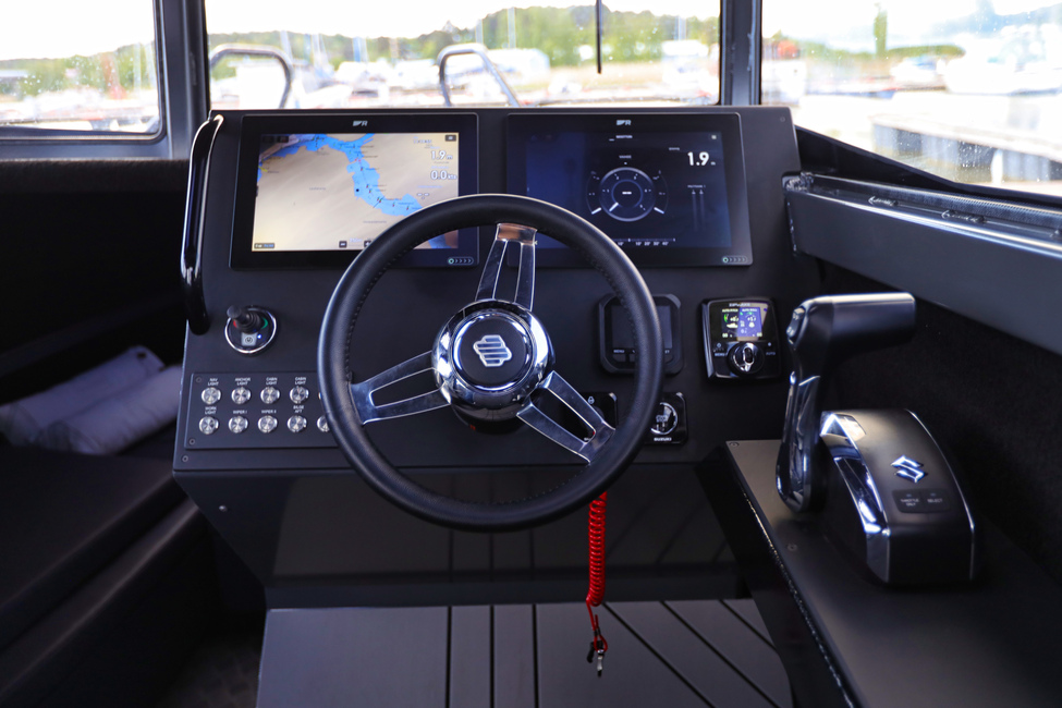 Kovassa kelissa ajomukavuutta tuo vakiona veneessä oleva kuskin painon mukaan säädettävä jousitettu istuin. Se tarkoittaa, että kun veneellä ajaa kovassa aallokossa, mukavuus on aivan toisella tasolla kuin kiinteän istuimen kanssa.