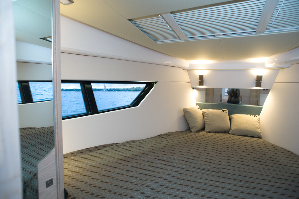 Tunnelma on raikas ja moderni. Jos suosii sellaista kotonaan, viihtyy varmasti myös täällä. Jos taas perinteinen tummempisävyinen arvokkuus puhuttelee, moni muu venevalmistaja tarjoaa sitä – siitä jo aiemmin mainitusta Grandezzasta alkaen.
