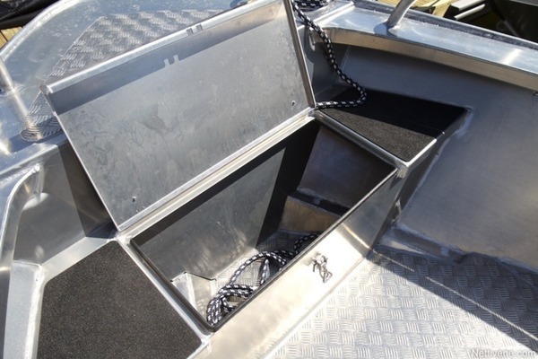 Kannen sijoittelu on hyvin yksinkertainen. Keulassa on penkki, ja Suomessa myytävässä mallissa sen alla lukittava luukku. Penkki on hyvin karhennettu, joten se toimii tukevana askeleena veneeseen keulasta tultaessa. Hytin edessä on taittuva penkki ja lisää säilytystilaa. Perässä on vielä lisää säilytystilaa, jälleen lukittavissa laatikoissa. Laidoilla on tukevat kaiteet, jotka antavat hyvän kädensijan kulkiessa veneessä, myös hytin sivuilla on kiinni hitsatut kaiteet.
