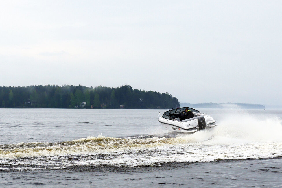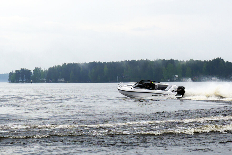 Kiihdytyksissä keula ei nouse pystyyn vaan hyvällä pohjan suunnittelulla vene nousee hyvin pienellä keulan ylöspäin reagoinnilla liukuun. Veneelle oiva matkanopeus 30 solmua tuntuu suorastaan leikittelevän helpolta ajaa. Terävän aallon yli ajaessa aallon huomaa ja kuulee, mutta käytös on tasapainoista. Tyynellä kelillä vene kulkee nautittavan mukavasti ja tasaisesti.
