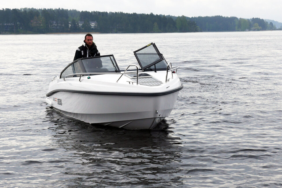 Veneeseen astuminen on helppoa keulasta tukevan keulakaiteen sekä karhean keulan pinnan ansiosta. Raskastekoisen matkustajan astuminen keulalle kertoo, että veneen pohjan suunnittelussa on haluttu ottaa huomioon mukavuus ja turvallisuus. Vene tuntuu vakaalta, eikä juurikaan reagoi yli 100-kiloisen miehenkörilään kyytiin kipuamiseen.