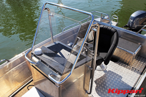 Ohjaamo on muutenkin kohtuullisen hyvä. Siitä henkii ”promaisuus”, vaikka aivan loppuun asti se ei ole harkittu. Hyvää on tuulilasin antama suoja, tukeva tarvikekaari, tumma mattataso, joka ei heijastele tuulilasille sekä varustus. Ohjaamon vakiovarusteena on hyvä karttaplotteri ja sille on asiallinen paikka.