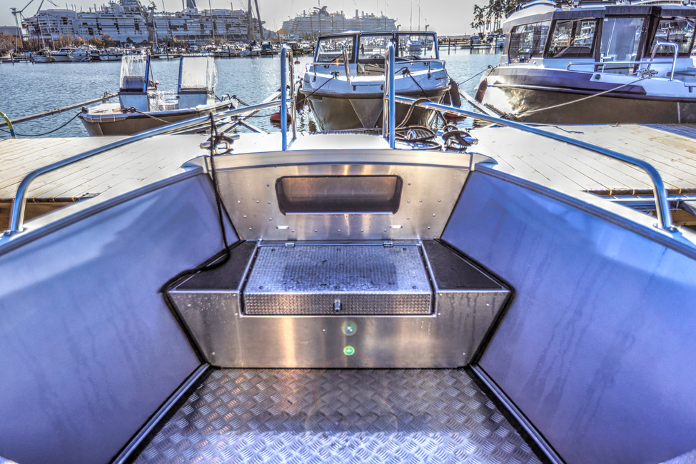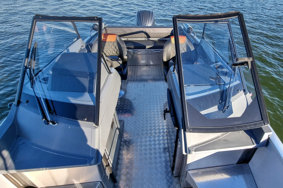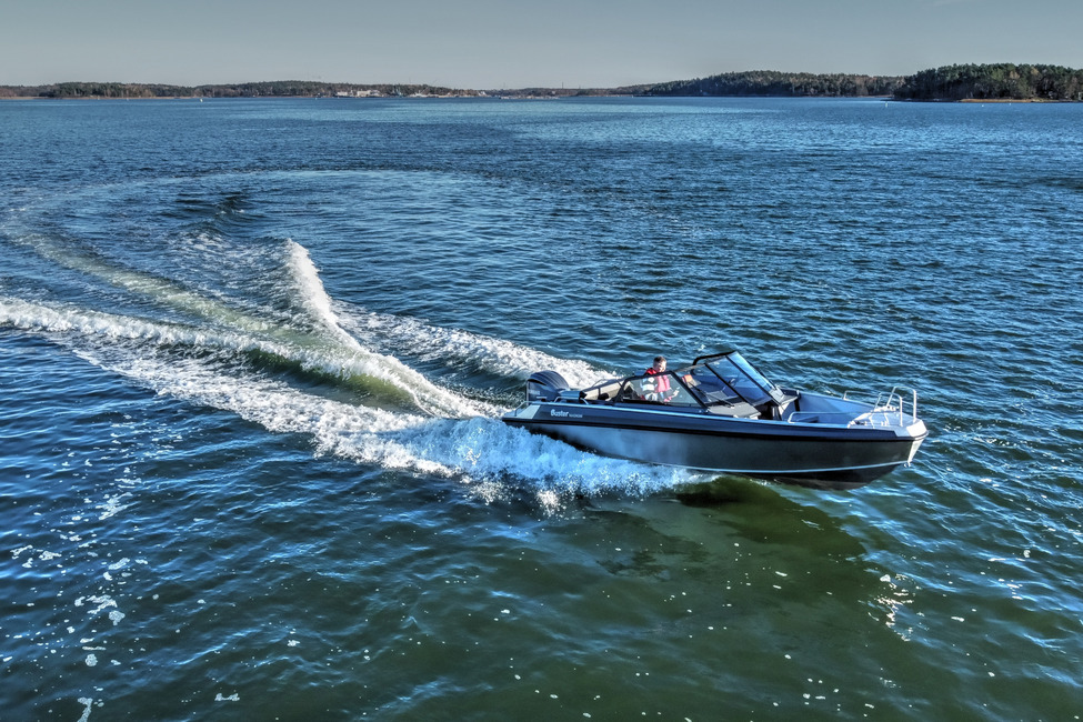 Iso, tilava ja vakaa avoalumiinivene, jolla on halutessa urheilulliset ajo-ominaisuudet sekä modernit ominaisuudet niin säilytystilojen kuin ison Buster Q -monitoiminäytön osalta. Sopii ihmiselle tai perheelle, joka haluaa tyyliä, on valmis satsaamaan laatuun ja mukaan aimoannoksen sporttista ajotuntumaa.