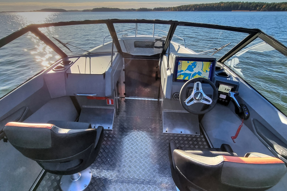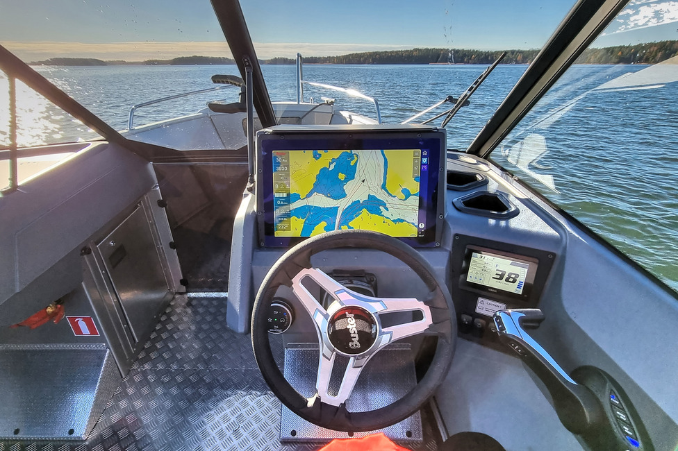 Koeajossa keli on tyyni ja aurinkoinen, joten emme päässeet testaamaan uutta Buster Magnumia sille ominaisessa aallokkoisessa kelissä. Mikään veneessä ei kuitenkaan antanut osviittaa, että se ei olisi edeltäjien tapaan omillaan jopa rankemmassa syysmyräkässä.
