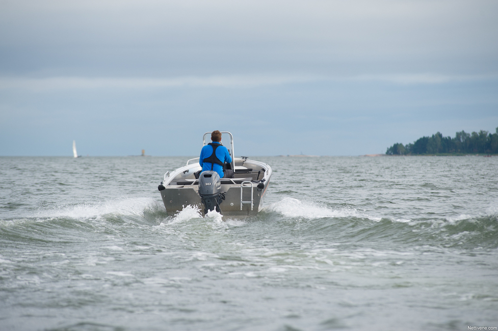Vene painaa 20 hevosvoiman Yamahan kanssa yhteensä 352 kg, 30-heppaisella 383 kg. Isompi tuo mukanaan rekisteröinnin ja 15 vuoden ikärajan. Toisaalta myös kyytiä riittää täysillä huudattaessa sitten noin 24 solmua, mikä on kokoluokkaan ihan mukiinmenevä vauhti. Miellyttävämmän moottoriäänen matkavauhti pyörii 20 solmun tienoilla.