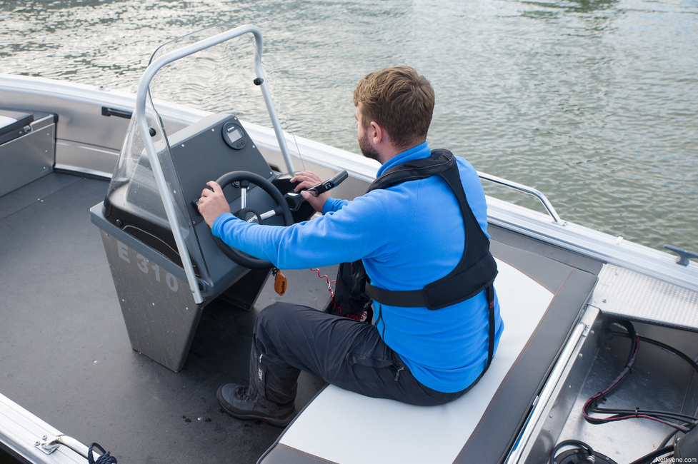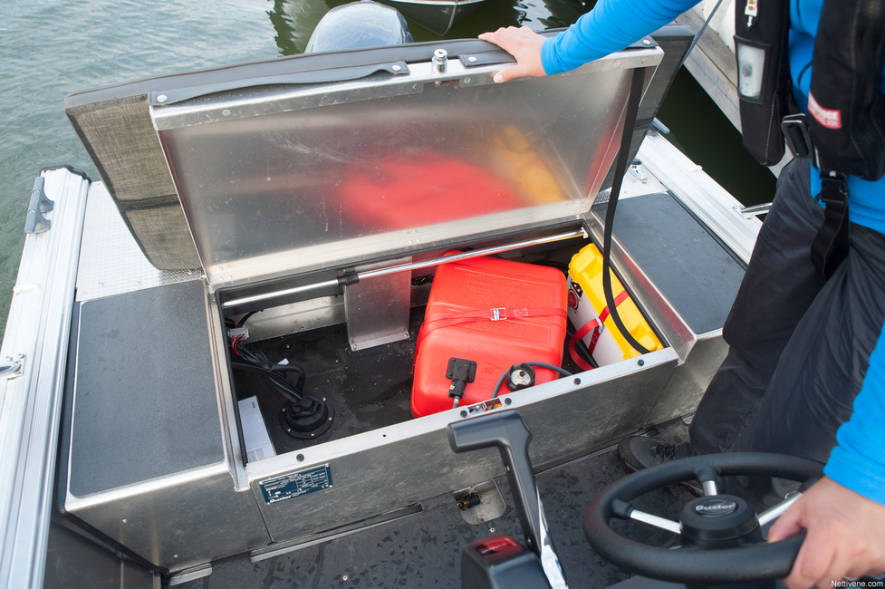 Ihan huippua ei ole myöskään tämän tilan päällä istuessa oleva ajoasento istualteen. Tosin hyvä se ei ole oikein missään pikkuveneessä. Kaukohallintalaite tulee kyllä lähelle kuskia, mutta ratti jää hieman kauas. Penkki on mukava, jos valitsee lisävarusteiset pehmusteet.