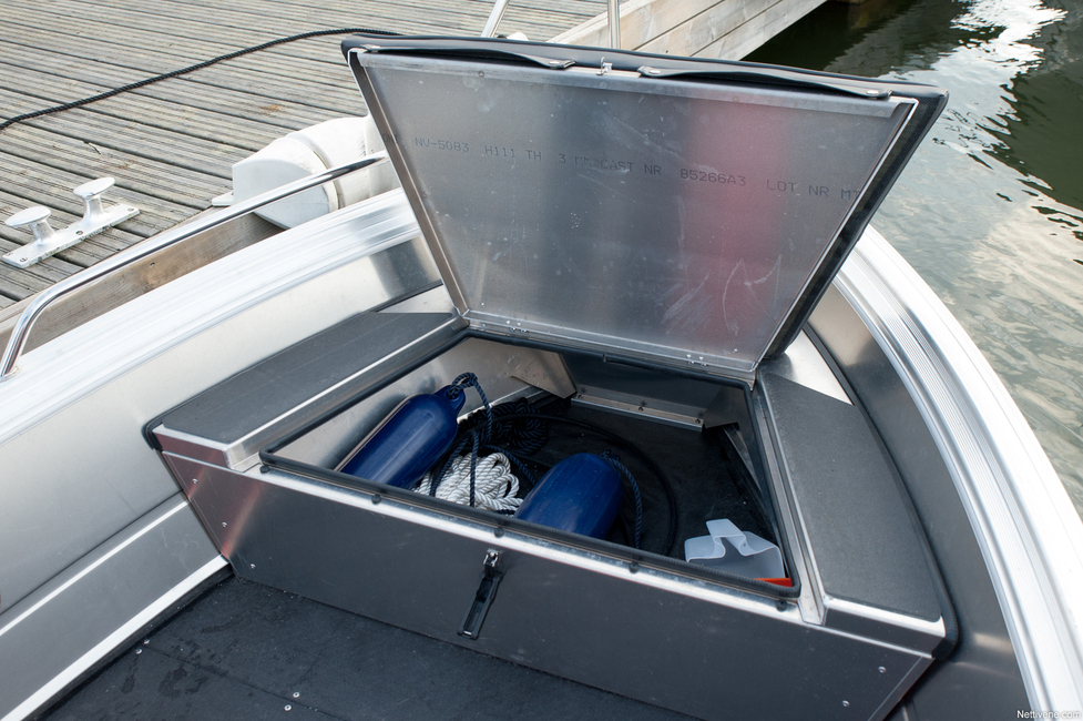Lähes yhtä hyvä kuljetuskapasiteetti on myös tässä koeajetussa Scc-mallissa, jonka ohjauspulpetti on keskellä. Lähinnä isoimpien kappaleiden kanssa voi tulla ahdasta, mutta pituutta ja toisaalta leveyttä lattialla riittää paljon näin pieneksi veneeksi. Jos taas haluaa lisää istumatilaa, irrotettavan keskipenkin saa lisävarusteena myös näihin S1- ja Scc-malleihin.