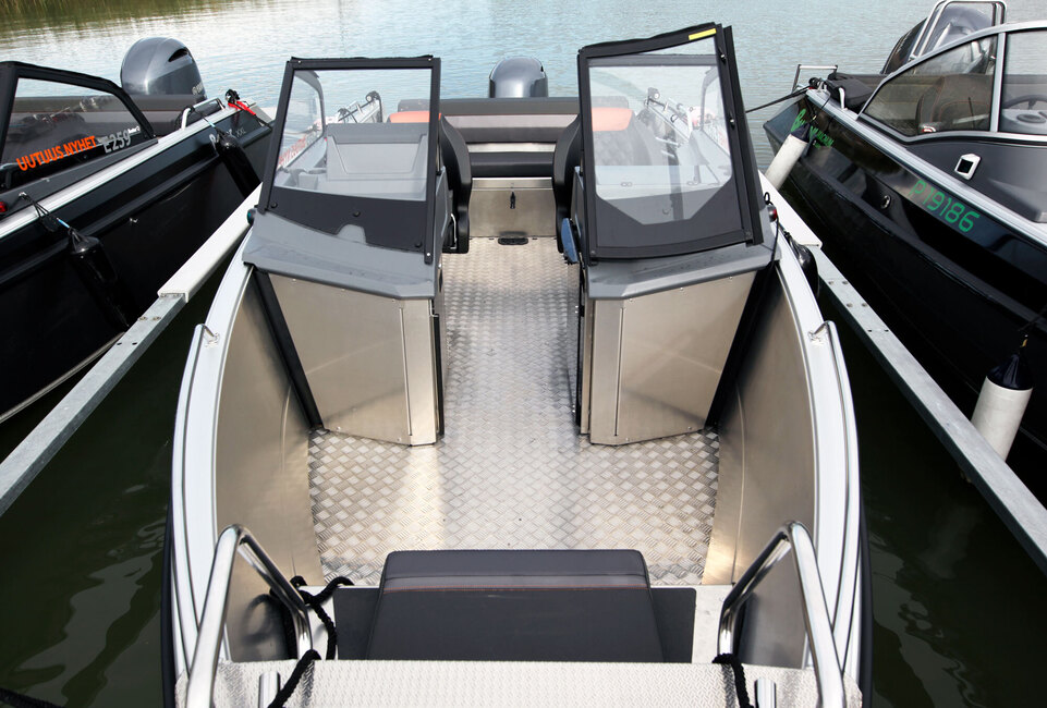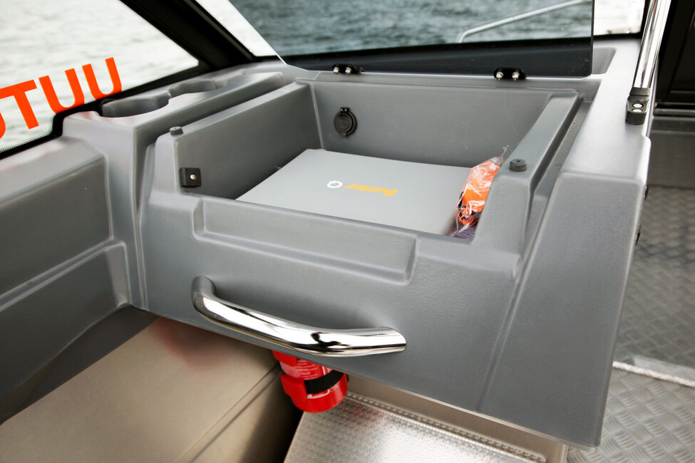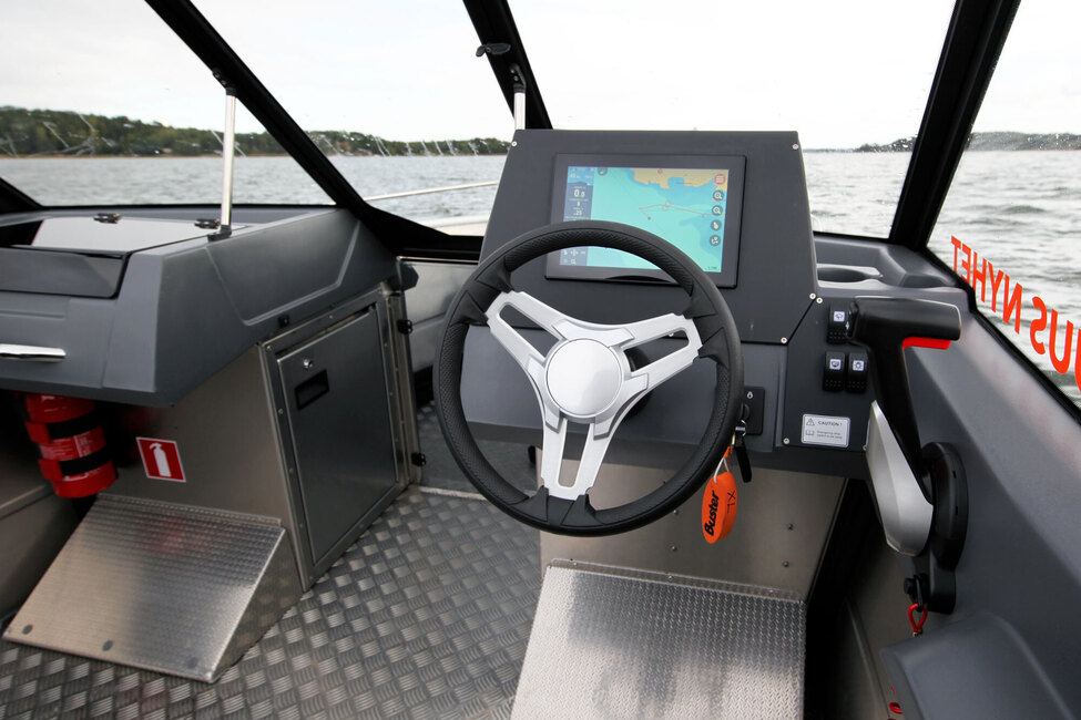 Veneen vakiovarustus on hyvä ja se sisältää muun muassa hydraulisen ohjauksen, kiinteän välioven, 2 kpl offshore-istuimia ja suojahuput, Uimatason sekä uimatikkaat, akkulaatikon, automaattisen pilssipumpun ja Buster Q 10-tuumaisena, jota valmistaja kutsuu veneilyn tulevaisuudeksi: