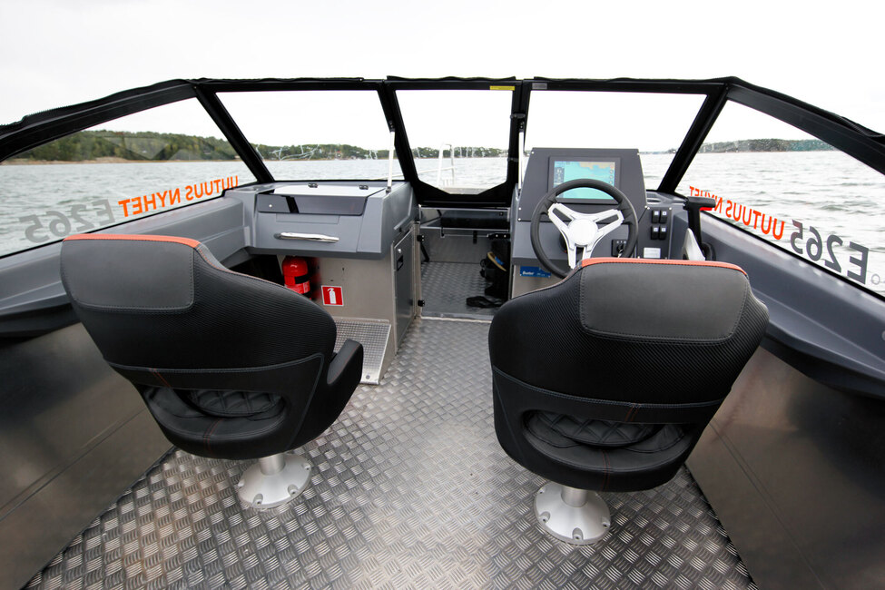 Ajaminen täyskaasulla 33 solmua yhdellä kädellä ja tähystämällä seisten oli kevyessä merikelissä suorasta leikittelevän helppoa. Myös ajamisen helppouden osalta valmistajan lupaukset pitivät, ja jos totta puhun, niin ylittyivät kirkkaasti. Näin helppoa ja vakaata tämän kokoluokan avonaista alumiinivenettä en ennen ollut ajanut.