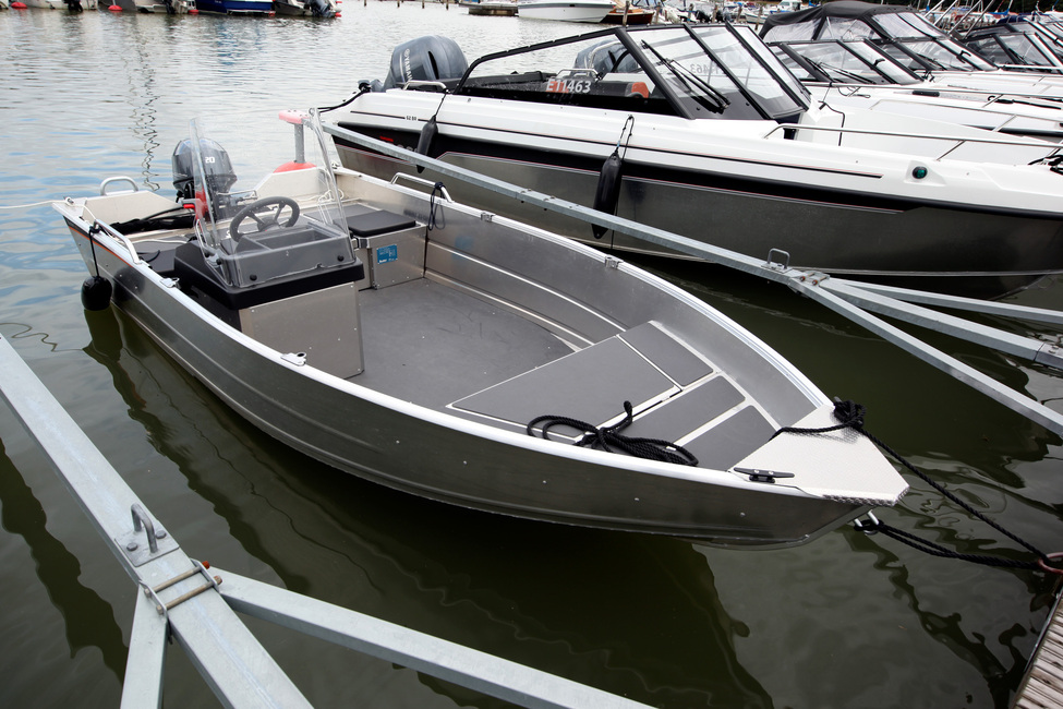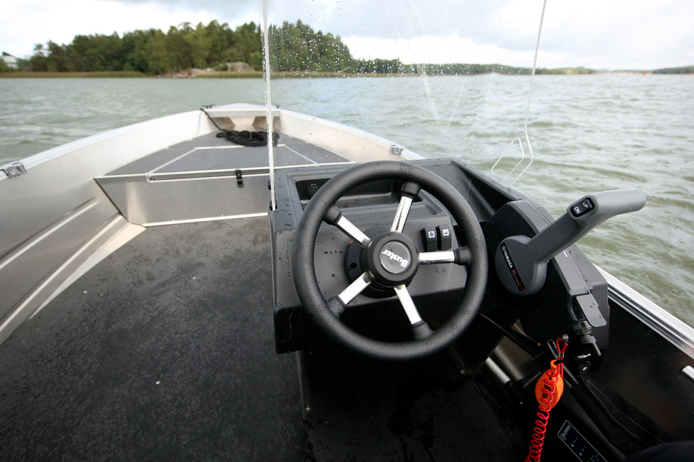 Vakiovarustelu on asiallinen, eikä lisiä välttämättä tarvitse. Mukana on mm. kaapeliohjaus, lukittavat säilytystilat, uimatikkaat, komposiittiturkki, knaapit, akkulaatikko, päävirtakatkaisin automaattisulakkein, automaattinen pilssipumppu ja irrotettava valomasto.