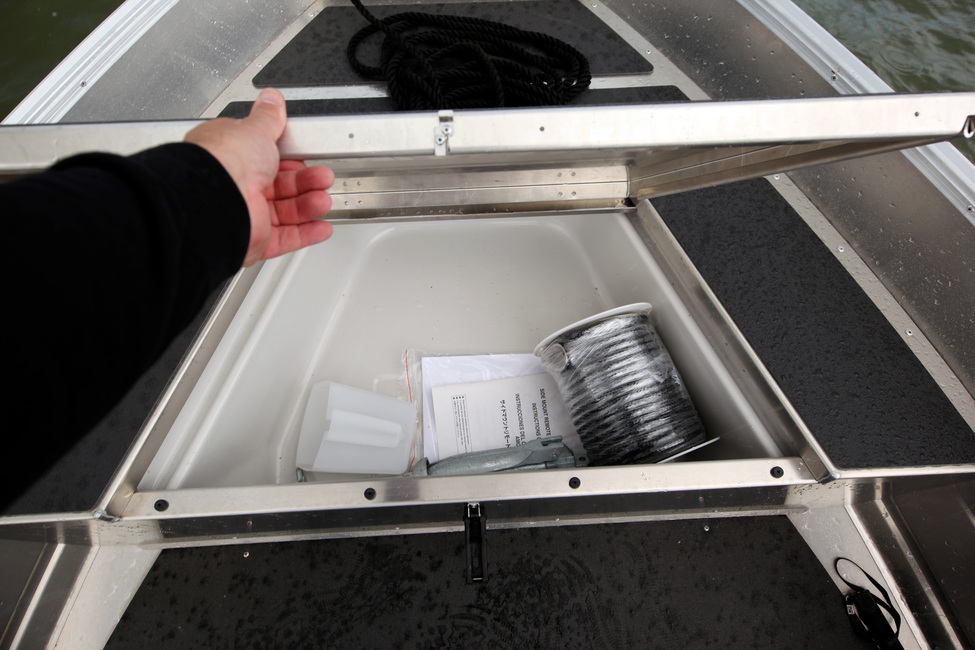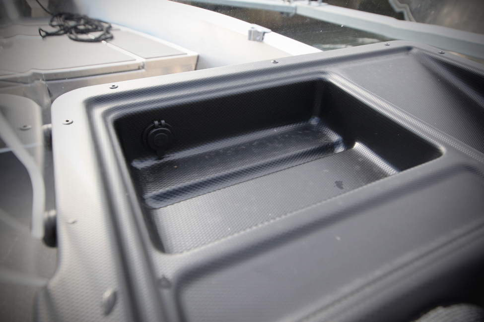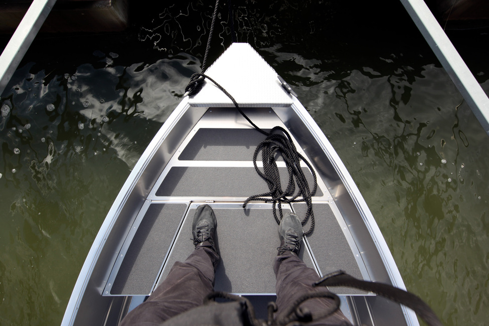 Keulassa on erittäin fiksusti suunniteltu laaja pehmeillä liukuesteillä vuorattu vakaa astumistila, jota voi hyödyntää heittokalastamiseen ja tietenkin istumiseen matkustettaessa. Luukun alta löytyy tilaa suojaa kaipaaville tavaroille.