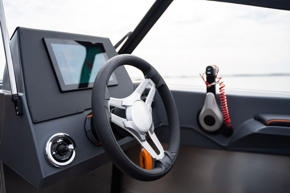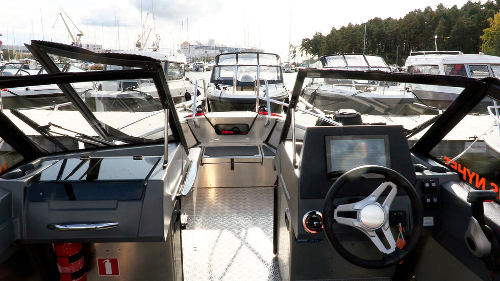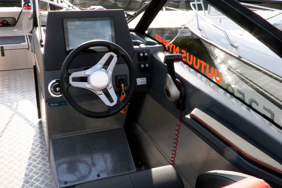 Kuljettajalla ja kartturilla on Offshore-istuimet. Buster XXL:ssä on XL:n tapaan vakiona Buster Q 10 eli 10-tuumainen kosketusnäyttö, josta löytyy karttaplotterin lisäksi paljon muita toimintoja. Erinomainen asia, että se on veneessä mukana vakiovarusteena.