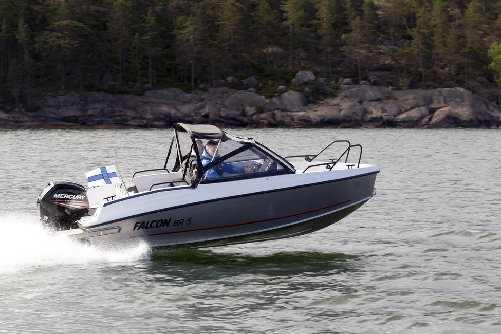 Bella-Veneiden tuore Falcon-mallisto on tästä hyvä esimerkki. Veneitä on hyvin samantyyppisillä ratkaisuilla varustettuna neljä kokoa: BR 5, 6, 7 ja 8. Nettiveneessäkin on aiemmin jo koeajettu ensimmäisessä aallossa tullut BR 6 sekä myöhemmin fiilistelynä malliston suurin BR 8. Tuon kasin ajamisen yhteydessä oli mahdollisuus kokeilla myös pienintä BR 5:tä. Vitonen osoittautuikin niin passeliksi laitteeksi, että vaikkei ollut aluksi tarkoitus tehdä siitä juttua, teki kuitenkin mieli kirjoittaa muutama sananen.