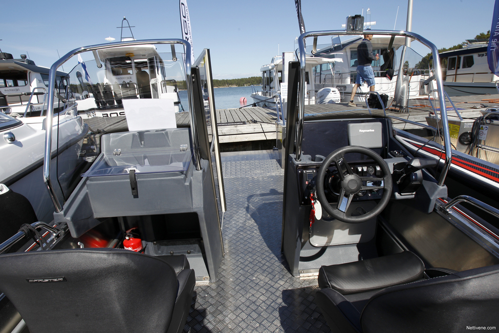 Lähivesiä kauemmas matkantekoa auttaa myös esimerkiksi 100 litran kiinteä bensatankki ja vakiovarusteinen Raymarinen karttaplotteri kaikuluotaimineen.