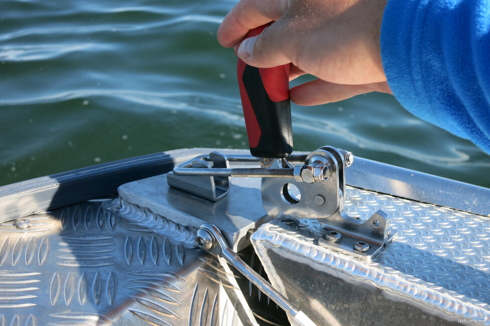 Kun sähkökäyttöisen rampin virrat ovat päällä, sitä voi käyttää ohjauspulpetin vivusta tai mukaan otettavalla kaukosäätimellä. Ensin pitää kuitenkin avata erittäin jämerät lukitukset käsin. Samoin sulkemisen jälkeen vivut on käytävä omin kätösin napsauttamassa kiinni. Käsilukitus liikauttaa ramppia vielä viimeiset millit tiivisteitä vasten. Jämäkän vivun klopsahtaessa paikalleen saa varman olon, että ramppi todella on vesitiiviisti kiinni.