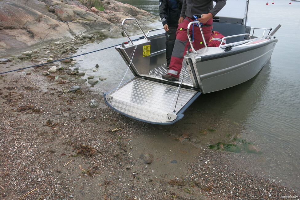 Sukelluskäytössä on näppärää, miten rampin saa laskettua käytännössä lähes vesilinjaan asti. Aallokossa kannattaa vain varoa, ettei vene hörppää vettä.