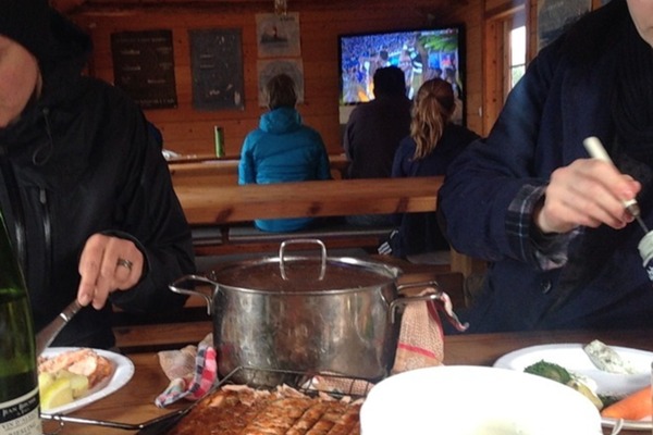On jalkapallon MM-kilpailut. Päätämme syödä ”kerholla”, siellä on televisio. Häveliäisyyttämme jättäydymme takariviin syömään. Ruokailun jälkeen huomaamme, että olimme arvioineet veneilijöiden jalkapalloinnostuksen väärin. Huone on täyttynyt ääriään myöten, emmekä näe perältä televisiot. Vetäydymme hieman vastahakoisesti takaisin veneeseen, sillä tunnelma on hyvä.