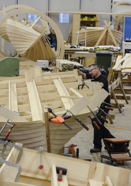 Limisaumaiset klassikkoveneet täyttävät hallin. Päiväpursi, talonpoikaisvene, soutuvene, puoliliukuva perämottorivene sekä fiskari kuuluvat tämän hetkiseen mallivalikoimaan. Täälläkö sitten perinnemallit säilyvät sellaisenaan jälkipolville?