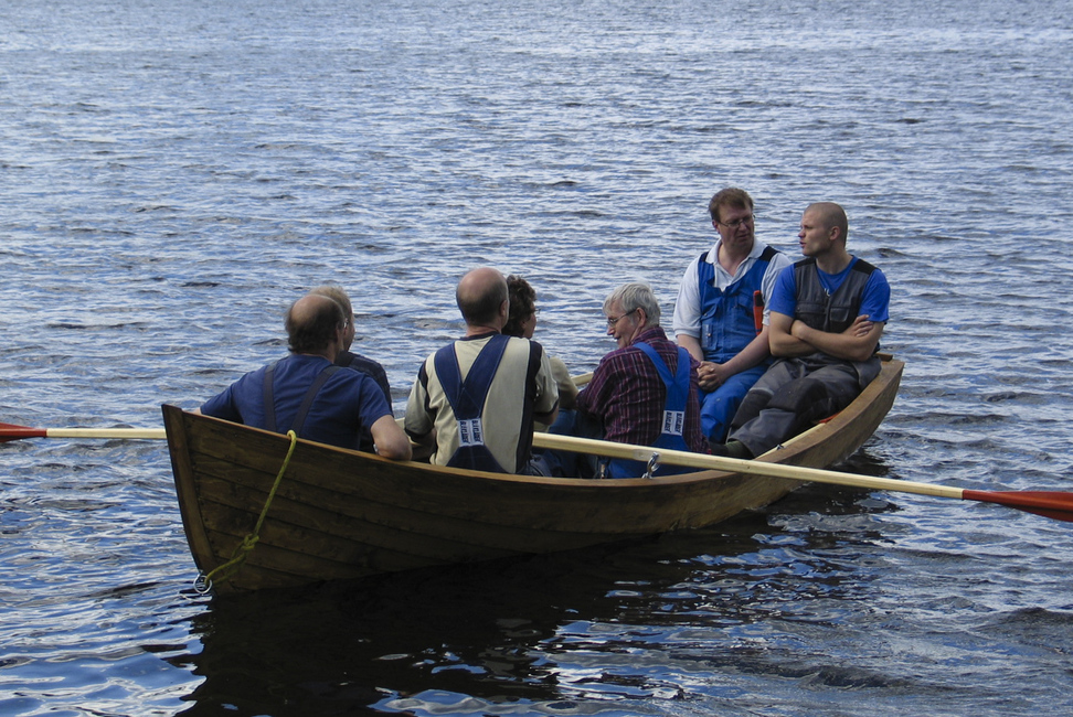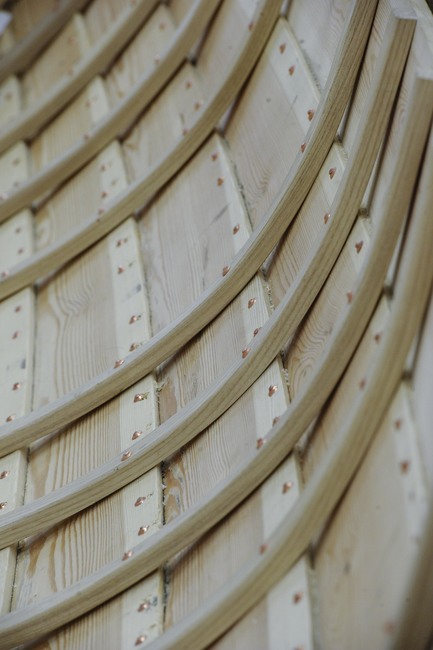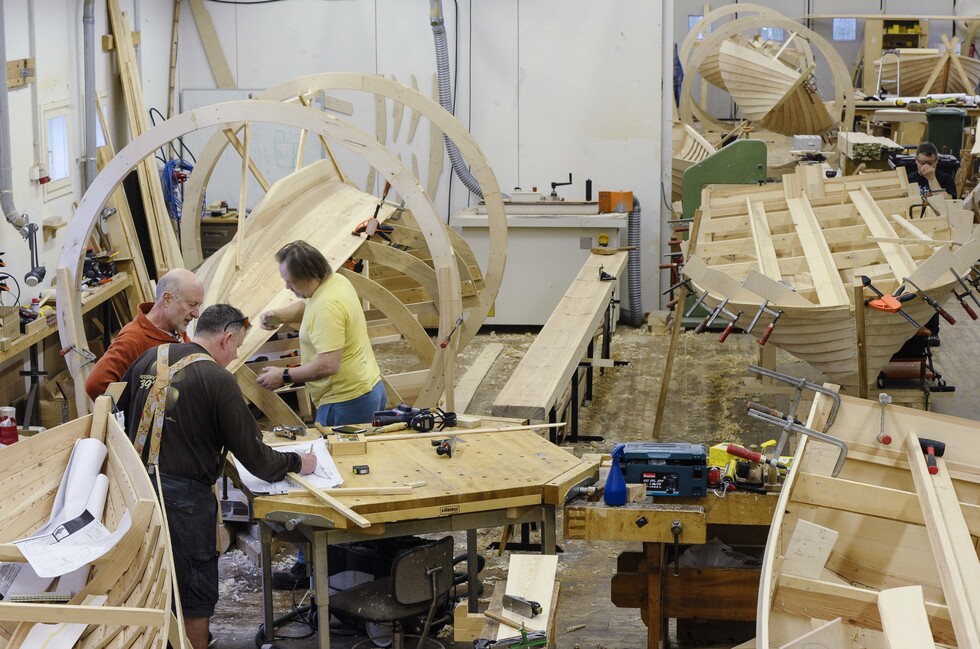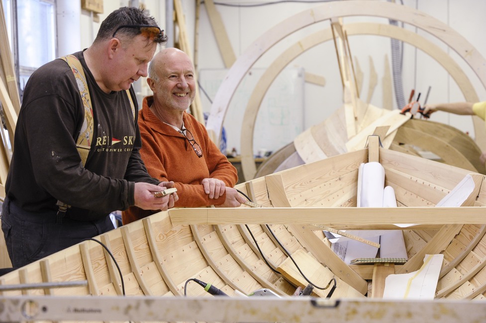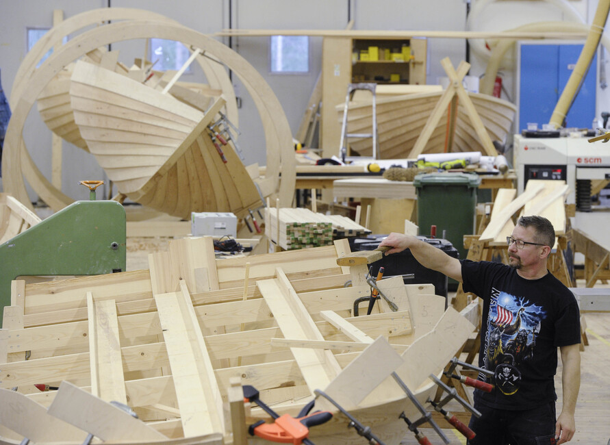 Täällä sopivassa elämäntilanteessa olevat 13 kurssilaista taivuttavat elävää puuta kelluvaan muotoon. Ihan kevyestä iltapuhteesta ei ole kyse, työtunteja tulee vähintään 25 tuntia viikossa 9. kuukauden ajan. Juhannuksen vesille laskuun valmistaudutaan siis vähän kuin uuden perheenjäsenen tuloon. Henkisesti ja ajallisesti. Sitoudutaan talveksi.