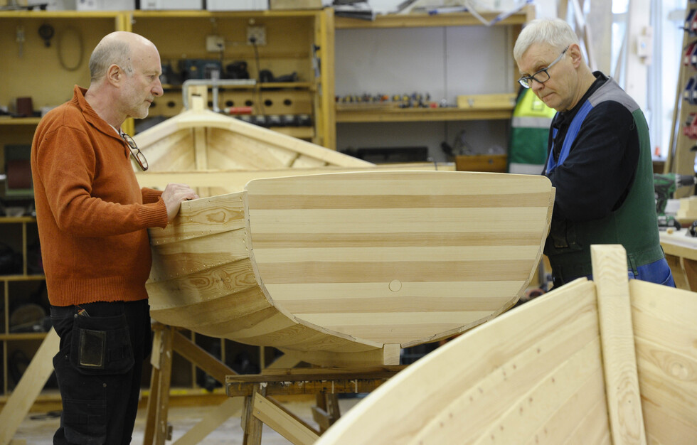 – Kyllä ja ei, vastaa kurssin vetäjä, veneveistäjä Esko Mattsson. Hän siirtää yli 40 vuoden kokemuksensa kurssilaisten käsien kautta toimiviin veneisiin.