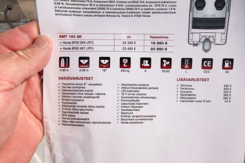 Tässä artikkelissa keskitymme uuden AMT 165 BR:n ominaisuuksiin suomalaisen veneilijän näkökulmasta. AMT 165 BR:n koeajovideo Nettiveneen YouTubessa.