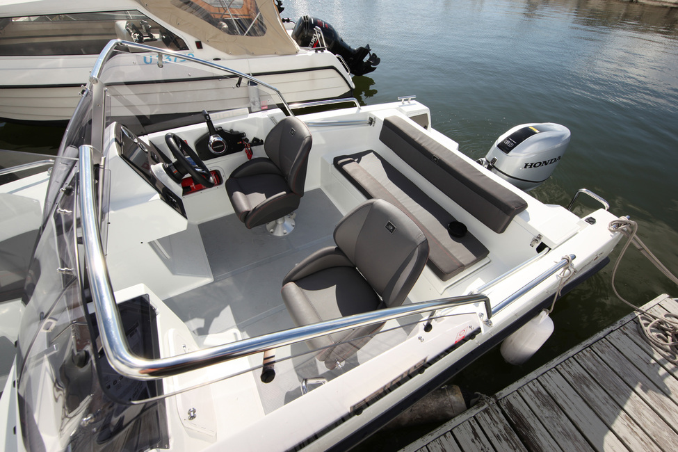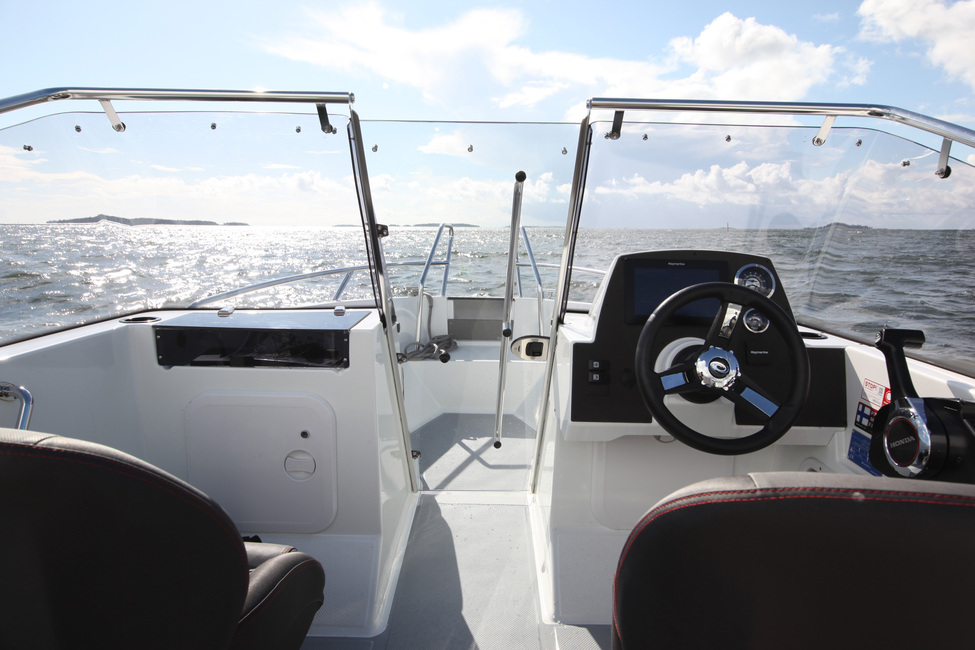 Liukuun vene nousee isommalla moottorivaihtoehdolla eli 60-hevosvoimaisella Hondalla sähäkästi. Asia on toisin, kun veneessä on esimerkiksi yhteysvenekäytössä kuusi aikuista ja tavaraa. Pienen moottorin rajat tulevat vastaan, silti paketti on houkutteleva. Tämä tuntuu hyvien ajo-ominaisuuksien ansiosta ajossa kokoaan isommalta veneeltä.