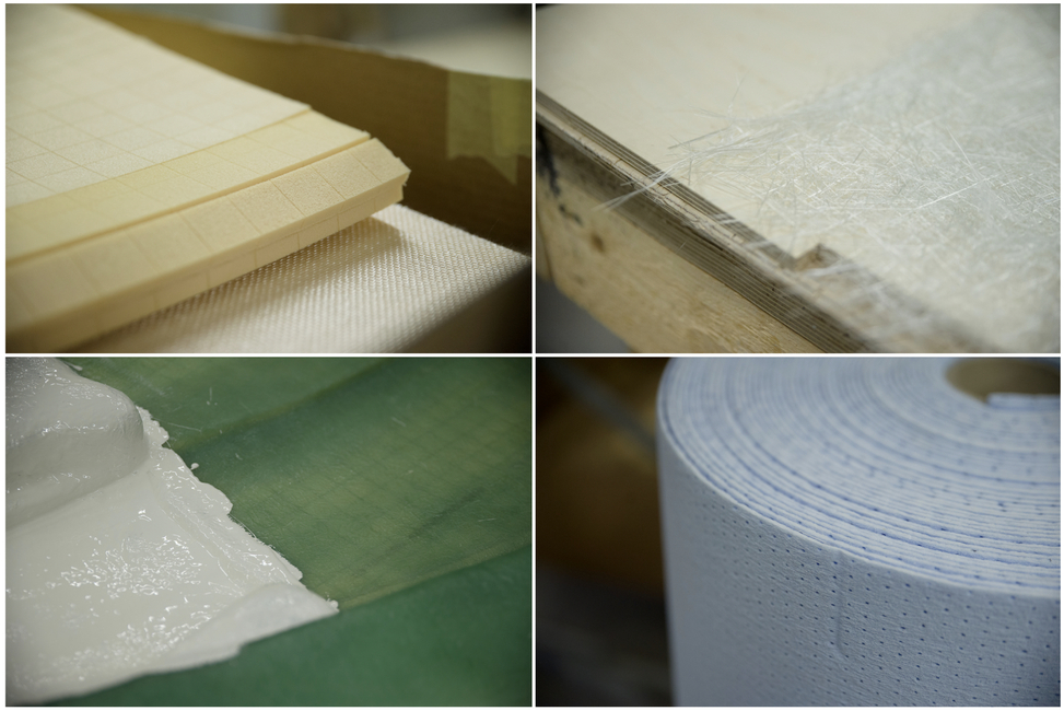 Lasikuitumatto on hyvää esimerkiksi veneen pohjaan. Se tuo lisää jämäkkyyttä merten tyrskyjen kohtaamiseen. Divinycell taas on vahvaa ja kevyttä levyä esimerkiksi kansirakenteisiin käytettäväksi. Sillä saadaan lisäpaksuuden myötä vahvuutta, jotta voidaan kävellä kannen päällä, mutta paino veneen yläosassa ei kasva liikaa.