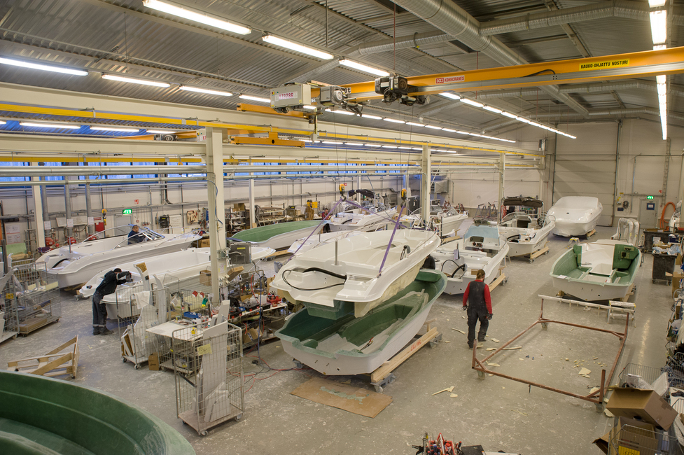 Aivan perustaltaan ne ovat kuitenkin varsin samoja: ensin laminoidaan lasikuituosat, sitten kootaan ne yhteen ja lopuksi varustellaan vene valmiiksi.