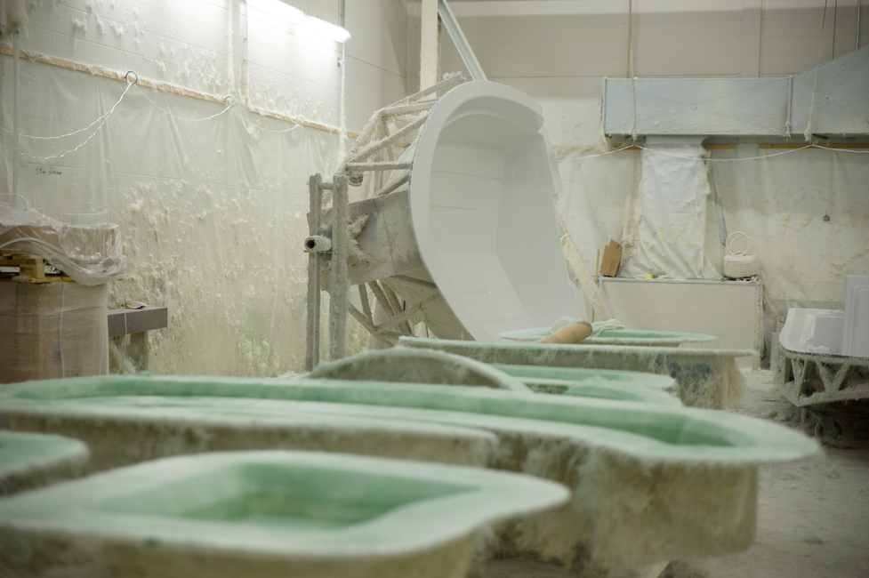 Muotteihin ruiskutetaan lasikuitua…