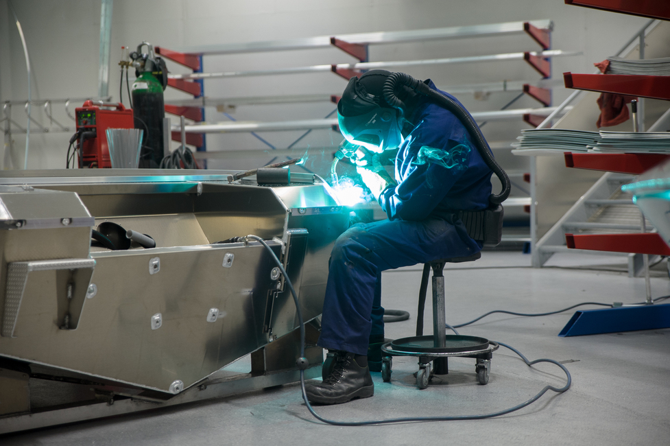 Hallissa kuuluu takomista ja ilmanvaihtokoneen hurinaa. Ilmaa pitääkin vaihtaa tehokkaasti, sillä hitsauksessa tulee hienoisesti savua. Työntekijöiden alumiiniarvoja elimistössä mitataan vuosittain varmistaen, että tekeminen pysyy terveellisenä.