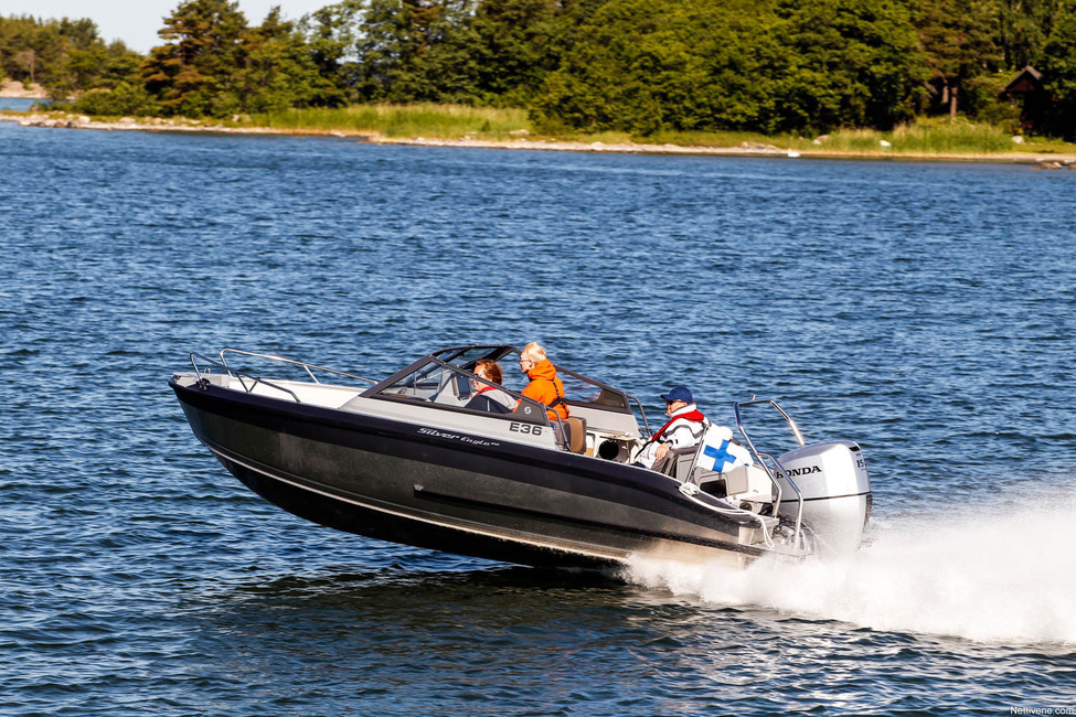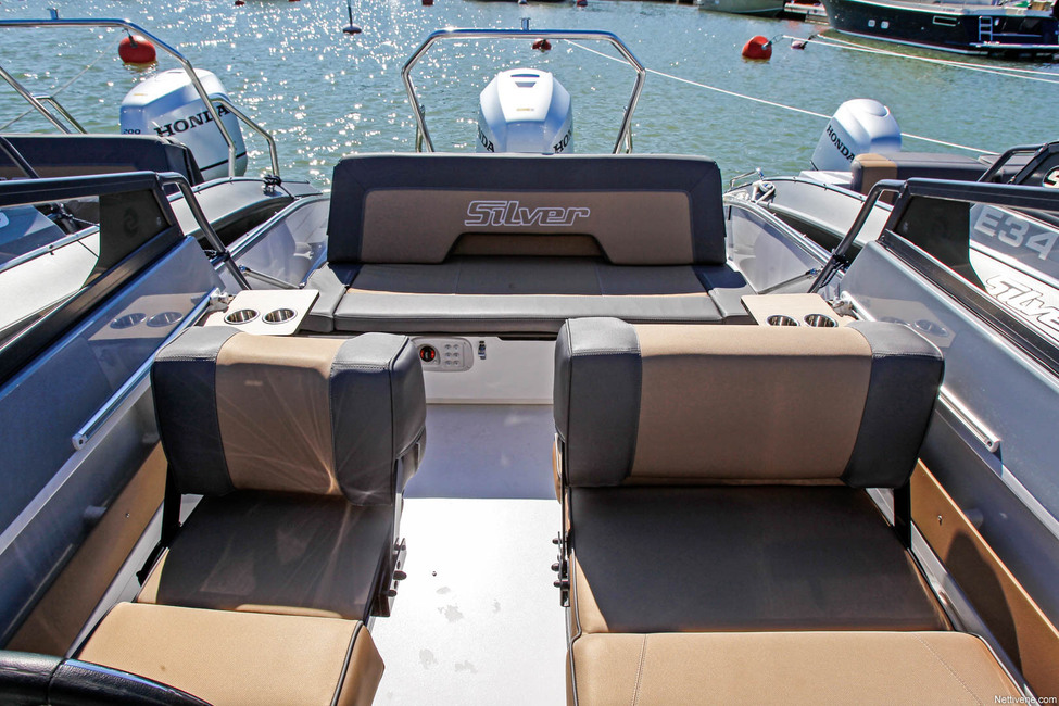 Moottorisuositukset ovat välillä 115-200 hevosvoimaa. Säästäväinen pärjännee pienimmälläkin koneella ja tehonnälkäinen ottaa joka tapauksessa isoimman, oli järkeä tai ei. Pakettien mukana Silverillä tulee Hondan moottoreita viiden vuoden takuulla.