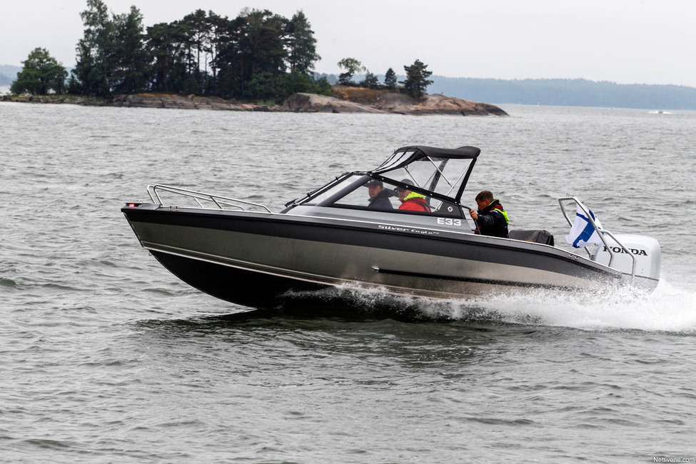 6-7-metrisistä kotimaisista lasikuitukantisista alumiiniveneuutuuksista Silver pyrkii astetta mukavampaan oleiluun. Tämä lienee koko perheen mieleen.