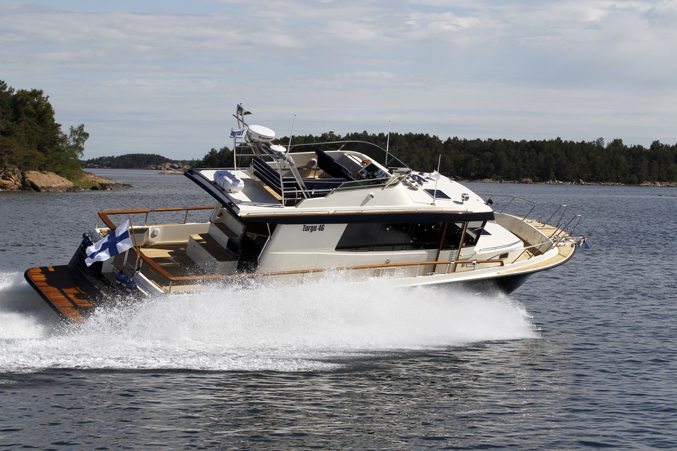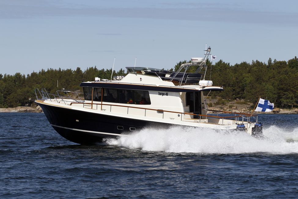 Sen lisäksi että se on isoin ja siksi makein, 46:ta voi kuitenkin perustella kahdella ihan teknisellä perusteella. Pidemmällä runkopituudella saa ehkä aavistuksen vielä parempaa merikelpoisuutta. Lisäksi 46:een mahtuu isommat moottorit.