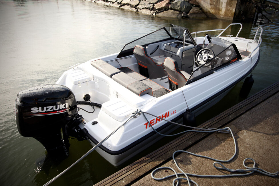 Terhi 480 Sport on sporttisen näköinen ja kohtuullisen hintainen valinta ensimmäistä venettää hankkivalle, pieneksi yhteysveneeksi tai mökkiveneeksi.