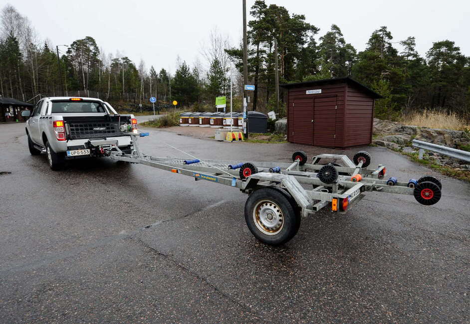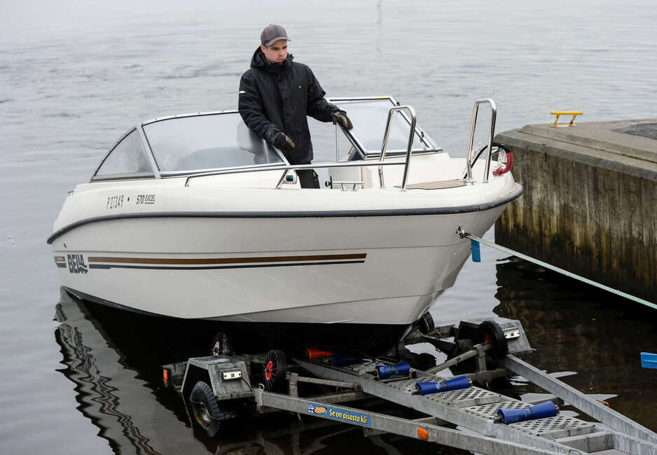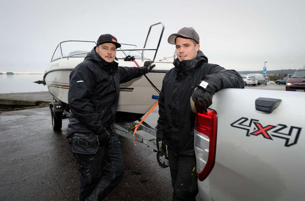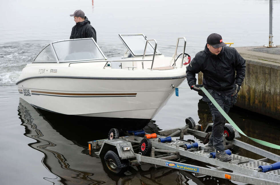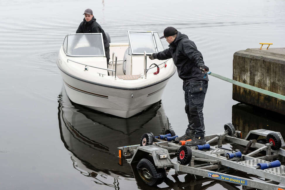 Sipoolaisen veneliikkeen W&W Marinen Tony Boman ja Max Malmberg nostavat ja laskevat veneitä työkseen liki 400 kertaa vuodessa. Jos ensimmäistä kertaa on lähdössä hakemaan venettä trailerilla, on hyvä käydä päässään läpi muutama perusasia jo ennen lähtöä. Onko rampin alusta betonia vai soraa? Onko vetoautossa riittävästi potkua? Onko trailerin kantavuus veneelle sopiva? Ovatko katsastus, jarrut ja valot kunnossa? Onko traileri säädetty valmiiksi juuri minun veneelle? Onhan vinssin liina tai vaijeri kunnossa? Tulihan kiinnitysliinat mukaan? Ja yllättävän tärkeä asia; pääseekö kaveri sovitusti talkoisiin, Boman summaa.