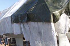 Talvisäilytyssatamissa kulkiessa näkee paljon erilaisia tapoja suojata vene talven ajaksi. Kovien myrkkyjen aikana pressut saattavat repeillä tai lentää kokonaan pois veneen päältä, erityisesti jos suoja on huonosti käyttöönsä soveltuva, tai sen kiinnitys on tehty huolimattamasti.
