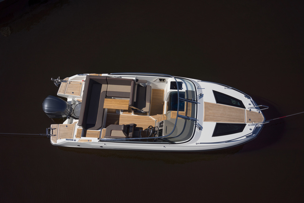 Sitä ajatellen daycruiser-vene tuntuu juuri sopivalta. Retkeilymahdollisuuksia on, T7:ssa jopa pienen lapsen mentävä pistopunkka keulasängyn lisäksi. Pientä ”leirielämää” voi viettää.