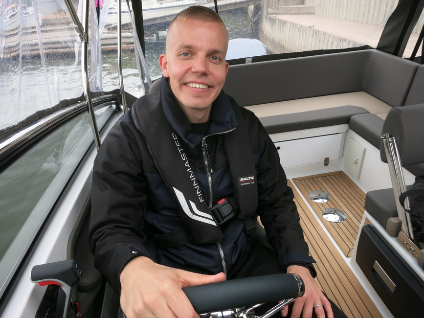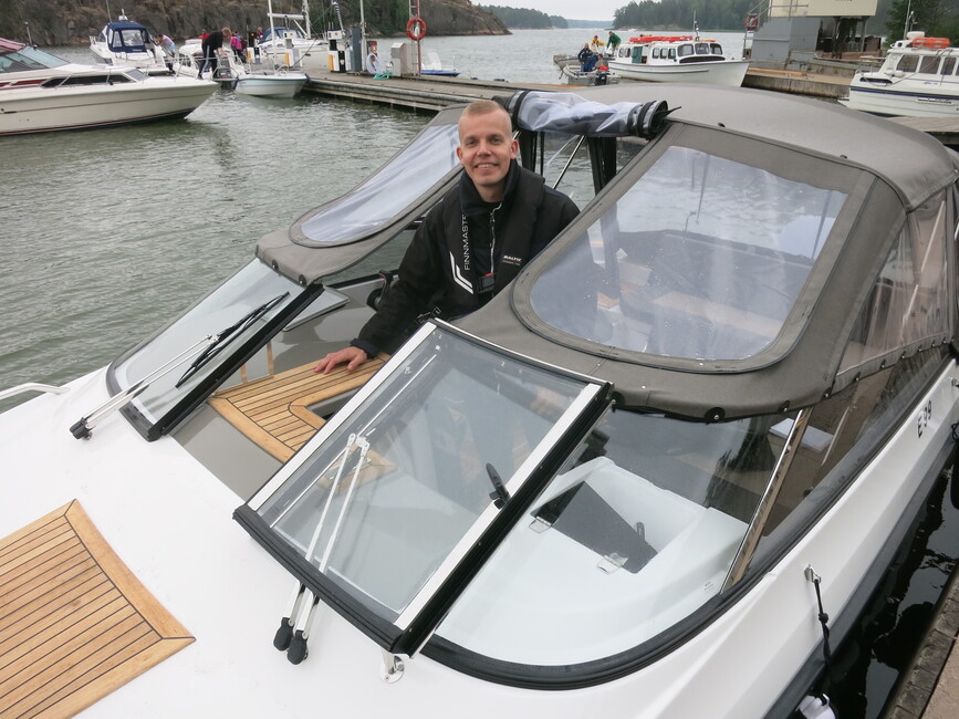 Kesä 2017 meni Finnmaster Husky R6:lla lajiin tutustuessa, kesä 2018 vähän isommalla Finnmaster T7:llä. Veneet ovat ns. ”sponssiveneitä”, eli valmistajalta pariksi kesäkuukaudeksi käyttöön saatuja ja siksipä tästä meillekin vinkattiin. Mutta ei se mitään. Kiinnostava kuulla ajatuksia uudesta harrastuksestaan kiinnostavalta persoonalta, joka on aloittanut veneilyn vähän eri iällä kuin yleensä. Ei keski-ikäisenä tai eläkkeelle jäädessään, vaan keskellä ruuhkavuosia.