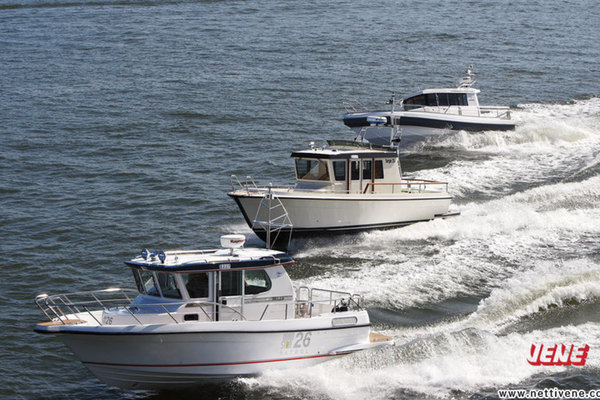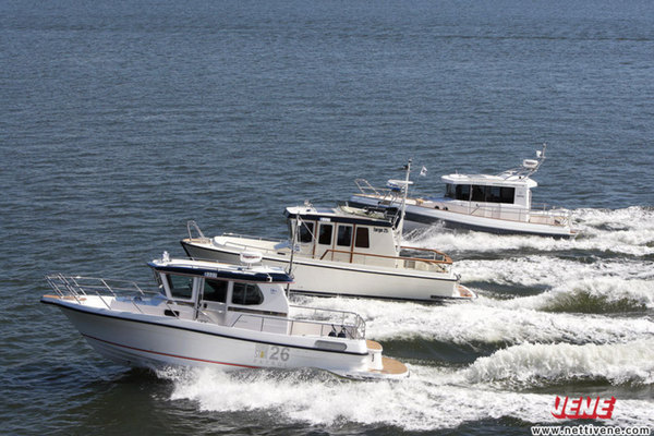 Testissä piti olla mukana myös neljäs vene, Minor Off shore 25, joka ehdottomasti kuuluu vertailujoukkoon. Harmittavaa kyllä, valmistaja ei lopulta pystynyt järjestämään venettä varsinaiseen testiin. Sen sijaan ajoimme Minoria myöhemmin Saaristomerellä, ja näiden kokemusten perusteella päätimme ottaa Off shore 25:n mukaan tähän testiin erillisenä verrokkina.
