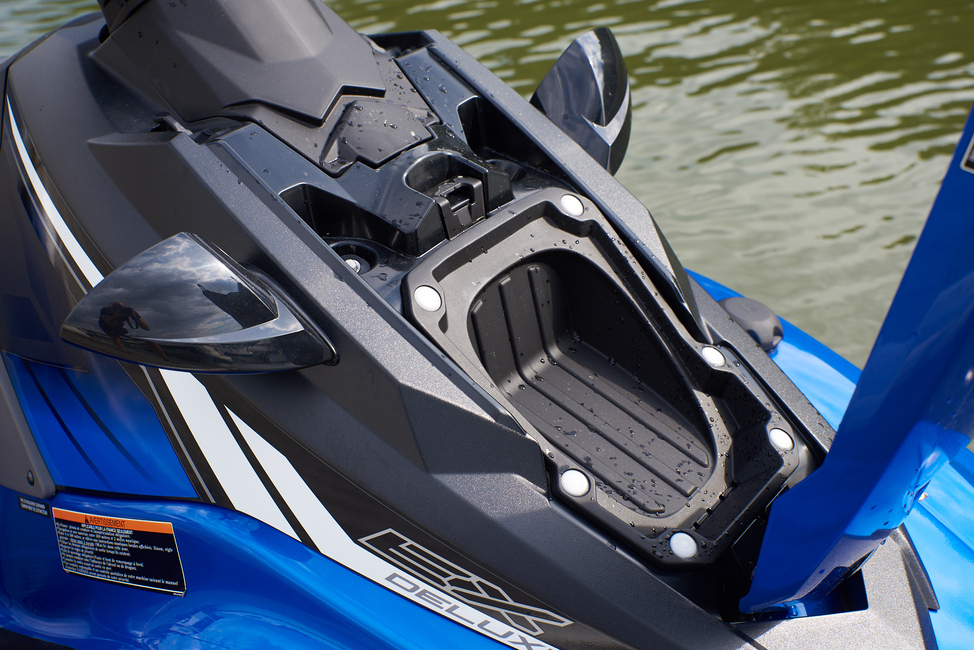 EX:n säilytystilojen kooksi ilmoitetaan yhteensä 29 litraa. Se on onnettoman vähän esimerkiksi Yamahan VX-mallin 93 litraan, mikä edustaa varsin tyypillistä jettisäilytystilaa. Sea-Doo Sparkin lisävarusteinen etusäilytystilakin on jo 28 litraa, eli lähes saman verran kuin EX:n tilat yhteensä.