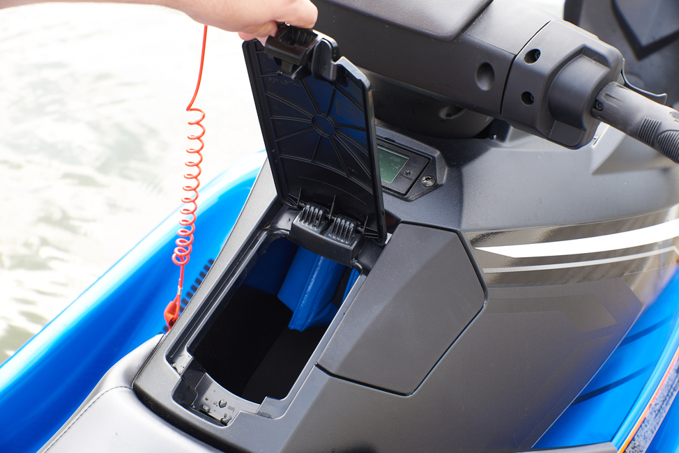 Säilytystilat yllättävät. Niitä on jopa kolme, mutta kaikki ovat melko pieniä. Tyypillisimpiä jettilokeroita ovat keulalokero sekä kuskin ja ohjaustangon välissä oleva ”hanskalokero”. Näistä hanskalokero on kohtuullisen iso, eli sinne mahtuu hyvin lompakko, kännykkä, juomapullo ja lisäksi vielä vaikka eväsleipä. Hyvä näin, koska tämä tila on ainoana helposti saavutettava jetin päällä ollessa.