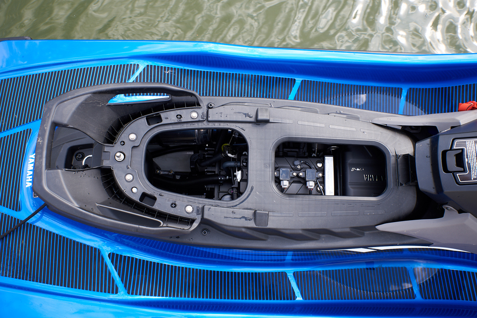 Yllättävä lisätila löytyy penkin irrottamalla. Yleisimmin jeteissä tällöin on vastassa vain moottori. EX:ssä taas moottorin päällä ja sen takana on myös säilytystilaa. Hyvä idea, tosin penkkiä on vaikea lähteä irrottelemaan vesillä, kun itse pitäisi istua sen päällä. Pahimmassa tapauksessa penkki, kuski tai molemmat tippuvat veteen. Satulan alla olevat säilytystilat ovat siis saavutettavissa käytännössä vain laiturissa.