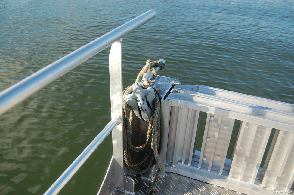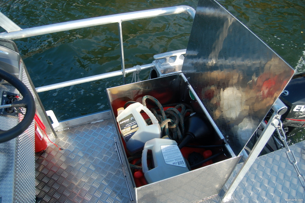 Kiinnittymiseen on aluksen nurkissa todella järeät knaapit isoillekin köysille. Niiden alla on säilytystilat köysille. Muuten suljettua säilytystilaa on vakiona todella vähän, vain kuskin penkin alla. Sielläkin tilaa vie bensatankki, tai Twin-mallissa kaksi bensatankkia.