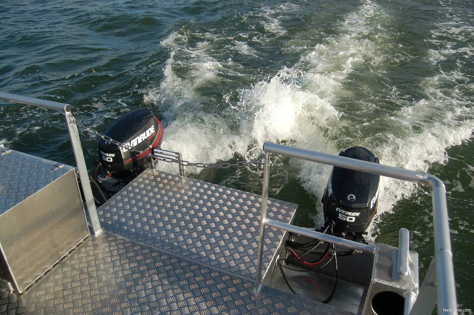 Koeajettu kuusimetrinen Alpo Classic oli mallia Twin, eli varustettu kahdella moottorilla. Se on tietysti käyttövarmempi ratkaisu: matka jatkuu, vaikka toinen kone piiputtaisi. Ahkerassa työkäytössä tai vaikeissa olosuhteissa varmuutta arvostaa vielä tavallistakin enemmän.
