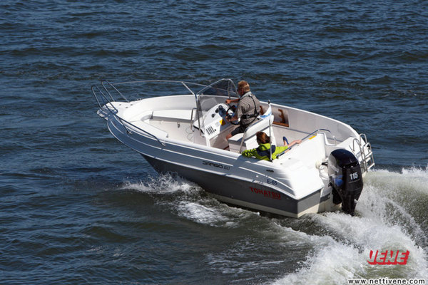 Peräpeilissä oleva 115-hevosvoimainen Tohatsu nostaa veneen nätisti liukuun ja mahdollistaa yli 30 solmun huippunopeuden sekä kahden hengen että täydellä kuormalla. Täyteen lastattuna liukukynnyksen ylitys vaatii lastin runsasta siirtoa keulaan.