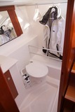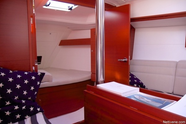 Sisätiloiltaan 310 on tietysti vaatimaton, mutta hämmentävän hyvät tilat veneeseen on kuitenkin ranskalaisvalmistajan toimesta saatu. Keulahytin ovi on käytännöllisen kekseliäs, mutta suljettuna keulassa ei tosin ole tilaa kuin sängylle. Peräkajuutta on takareunaltaan matala, mutta ainakin yhden nukuttavaksi mukavan tuntuinen.