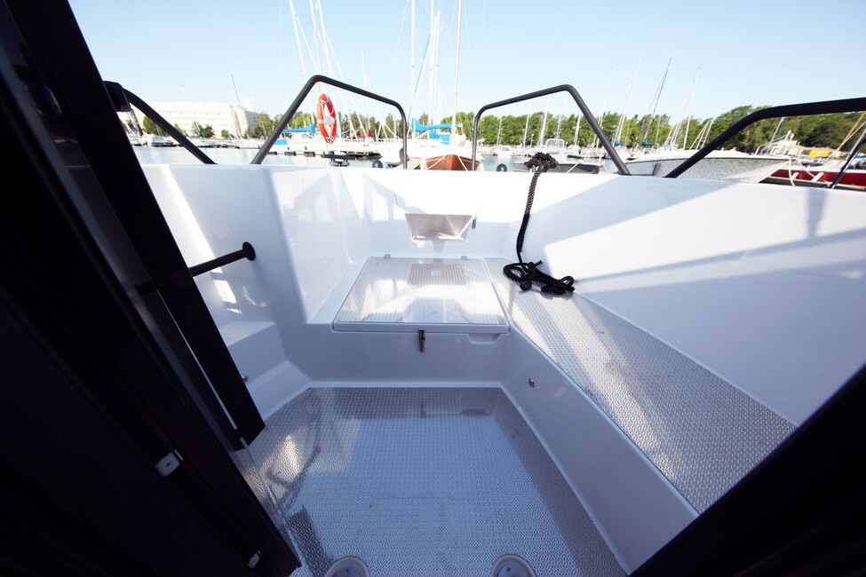 Keskihytti ja läpikuljettava rakenne helpottaa kulkemista ja on käytännöllinen ratkaisu esimerkiksi yhteysvenekäytössä. Perän avoin tila sopii erinomaisesti kalastukseen.