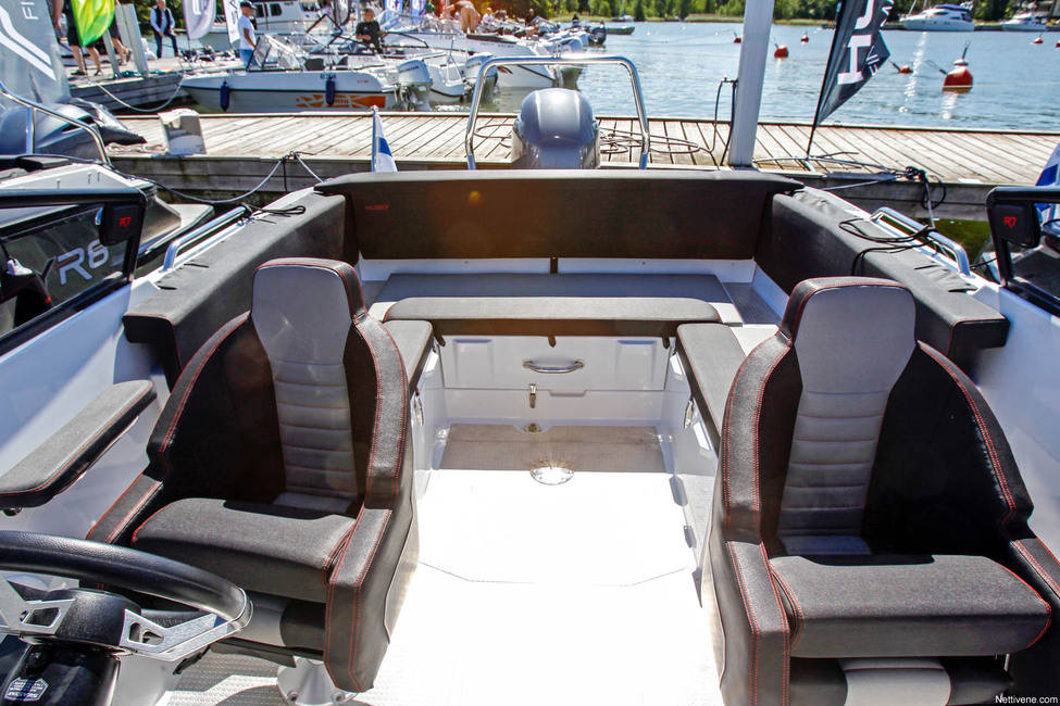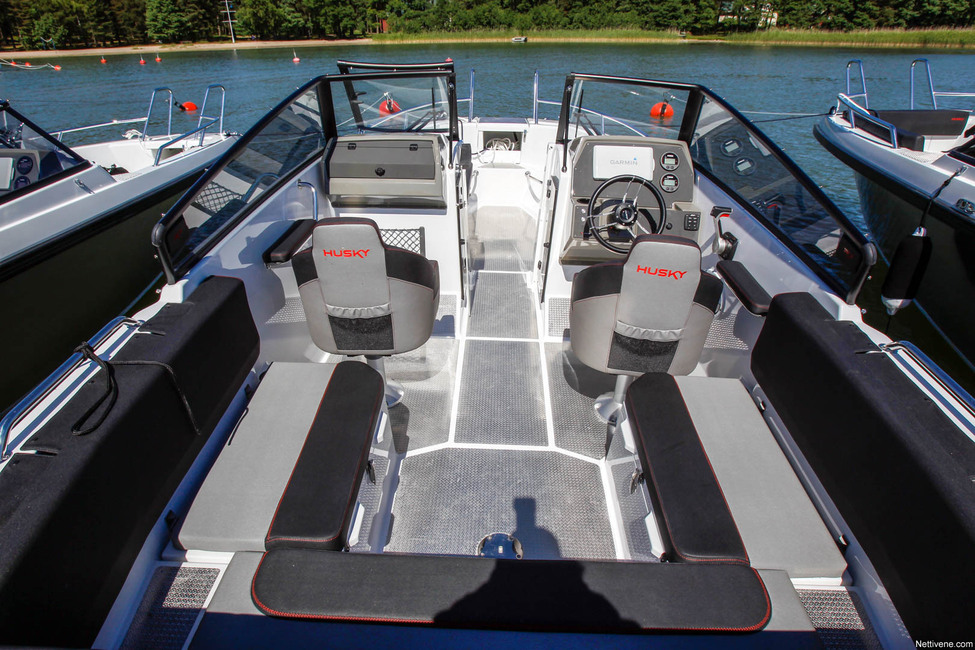 Husky R6 on 5,86-metrinen sarjan aloitusmalli. Vene painaa kokoisekseen jykevät 890 kg ja konesuositukset ovat välillä 100-130 hv. Hinta ilman moottoria on reilut 26 000 euroa, ja moottorin kanssa pyöritään 40 000 euron tienoilla pakettihinnoissa. Aika tymäkkä perusmalli siis… Se pitää huolen, etteivät nämä tule aivan hurjasti yleistymään joka mökkirannassa.