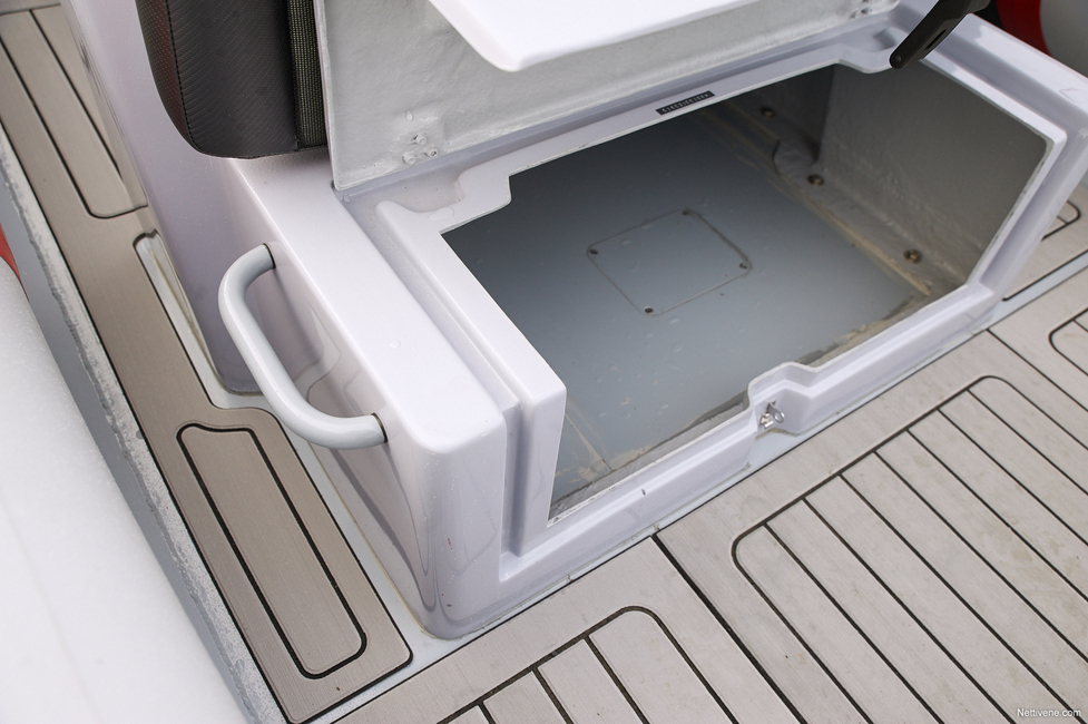 Säilytystiloja löytyy isot tilat takapenkin ja ohjauspulpetin edessä olevan penkin alta. Muualla pulpetissa ja kuskin penkin alla sekä keulassa on myös pienemmät tilat. Keulassa on köysiboksi, jossa on oikeaoppisesti köyden mentävä muoto, jotta sen saa kiinni köyden kanssakin. Muutenkin köysien kanssa homma hoituu, kun kiinnityspisteet ovat asiallisia.